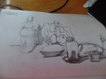 So the beginning of the class started with us trying to peer over the shoulder of Linda to see the minute screen of her apple laptop to see examples of the type of work we would be doing in the class. I didn’t even bother to look as the glare off the screen meant I couldn’t see anything and the screen was so small, even if I had been able to see something, it wouldn’t have really shown the pastel and charcoal techniques she was going to demonstrate.