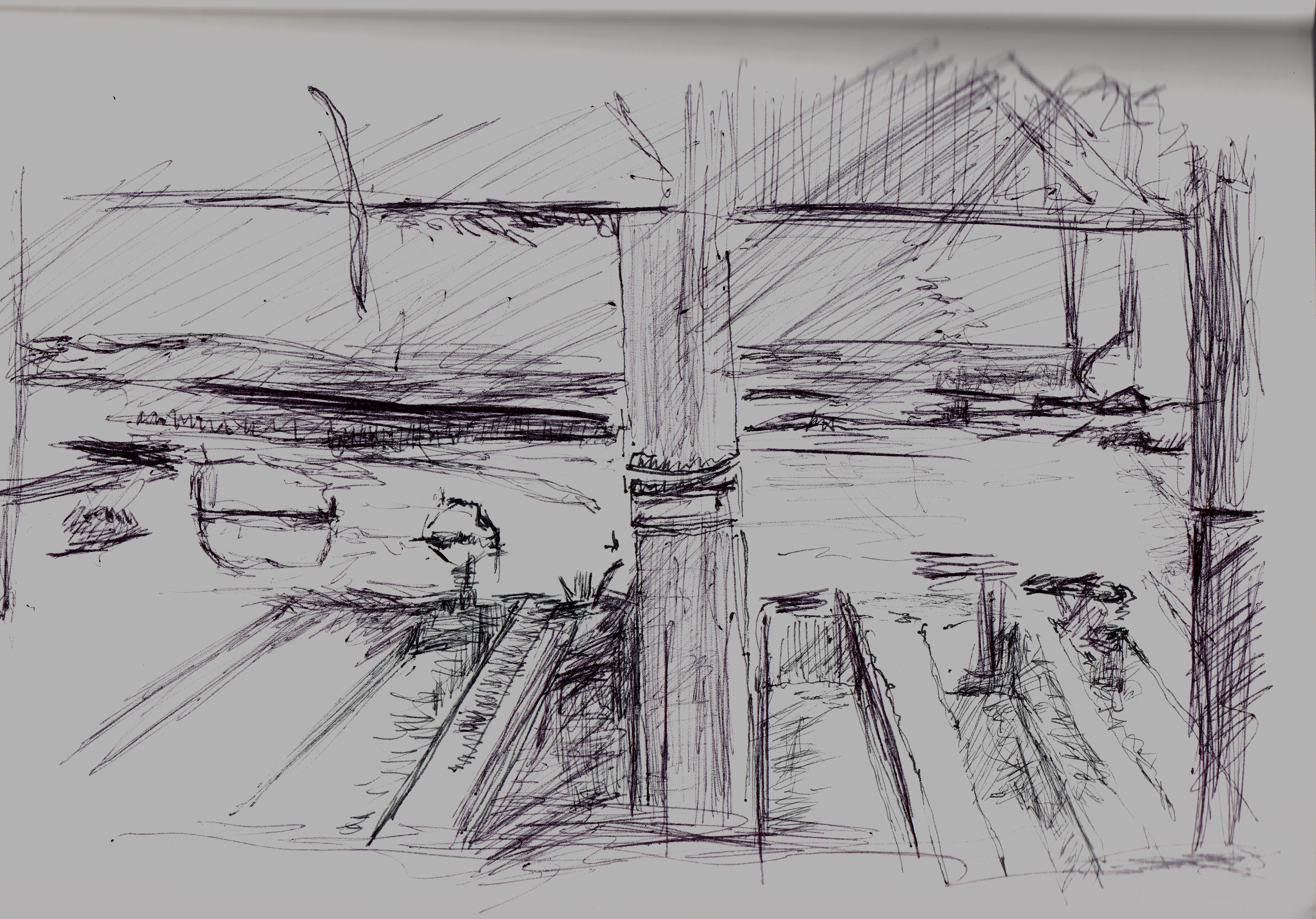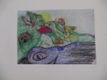 The main project I have worked on since I last wrote, is a mixed media work based on a photo I took when I was in France last year. In theory I had plenty of time to sketch while I was in France and it probably would have been a welcome relief to all the house clearing and visiting of my parents. But I didn’t so, in the week Gordon was there, I decided to take random photos of the countryside as we drove between the nursing home and the recycling dump with the intention to use them some way in my art.