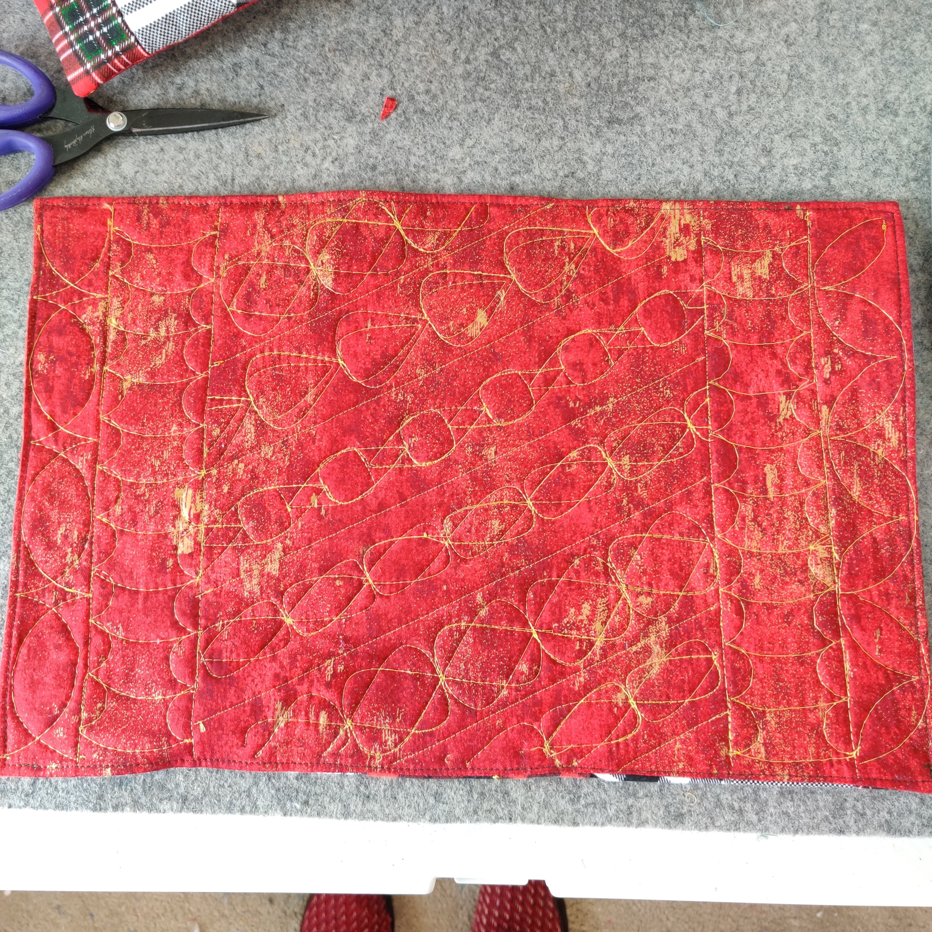 Although I am probably finished with this particular piece, I am going to do one more process to it. Put it in the washing machine when I do my next load of washing. It will have to go with a dark load as no doubt the red will run ( the colours from experience are no colour fast). It will wreck it but I will be interested to see how it turns out. Maybe I can work on it further once that process is done.