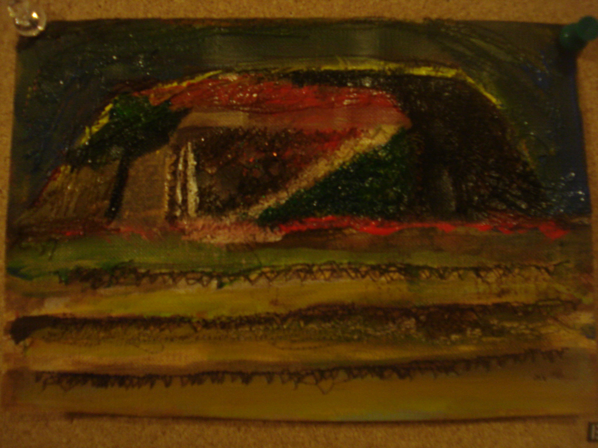 The first week the instructor (Linda Montignani) demonstrated the different applications of acrylic paint and why it is the most versatile of mediums. She also show us a few mediums and gels available to extend that versatility. She then show us how blotting, using shapes, salt and mineral spirits could affect the surface of the paint. We were then instructed to cover our chosen painting surface with paint and use a few of the techniques described above. Once we had done that and while we were waiting for the paint to dry, she show us how to use drawing ink and straws. Back to the paintings in progress. The last part of the exercise was to make our random actions into something.