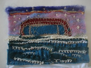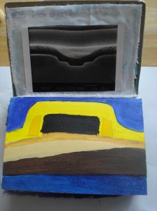 I must admit I was a little stumped at this point and it was a bit like doing an art therapy exercise. However, below is what evolve. Looking at it later, I realise it kind of encompassed my art work over the last 35+ yrs, harking back to my interest in graffiti on walls and children’s art while I was in college and then right up to the mixed media project I did for the Sketchbook project.