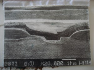So the beginning of the class started with us trying to peer over the shoulder of Linda to see the minute screen of her apple laptop to see examples of the type of work we would be doing in the class. I didn’t even bother to look as the glare off the screen meant I couldn’t see anything and the screen was so small, even if I had been able to see something, it wouldn’t have really shown the pastel and charcoal techniques she was going to demonstrate.